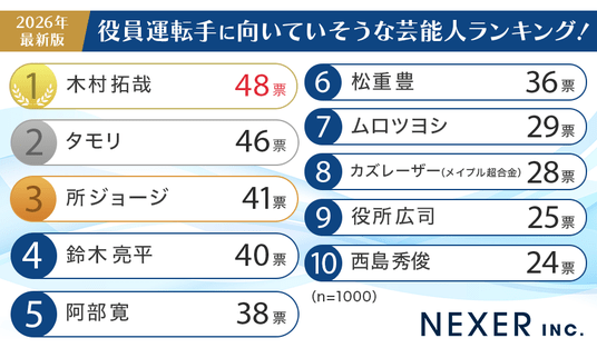 ということで今回は株式会社トランスアクトと共同で、全国の男女1000名を対象に「役員運転手に向いていそうな有名人」についてのアンケートをおこないました。