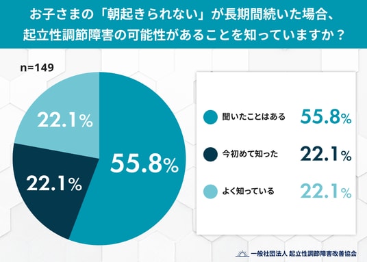 - 「起立性調節障害」を「よく知っている」保護者は約2割。名称は知っていても詳細な理解には至っていない現状