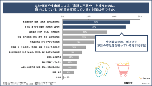 単なる「おまけ」ではなく、実質的な支出抑制を実現する「家計の防衛手段」としてポイ活を活用している層が5割程度。
