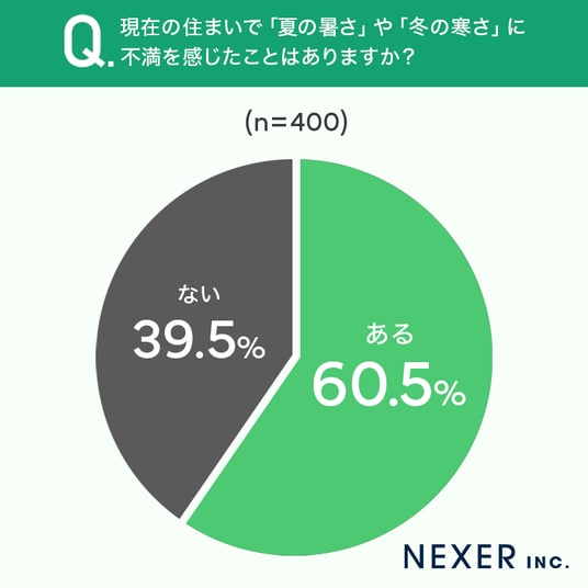 ■60.5%が「夏の暑さや冬の寒さに不満を感じたことがある」と回答