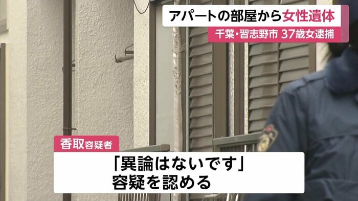 千葉・習志野市の自宅アパートの一室に、女性の遺体を遺棄した疑いで37歳の女が逮捕された。