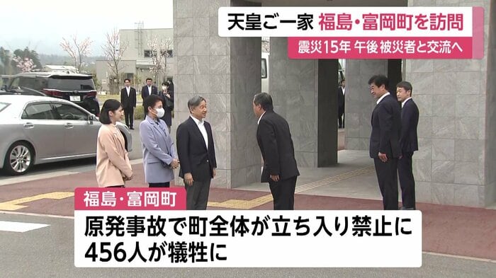 福島県を訪問中の天皇ご一家は、東京電力福島第一原発から半径20キロ圏内にある富岡町を訪問された。