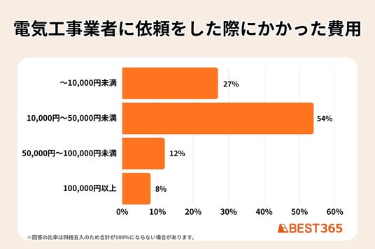 一方で、突発的な電気トラブルに見舞われた場合、プロに修理交換等の作業を依頼すると多くの方が10,000円~50,000円かかることが分かりました。