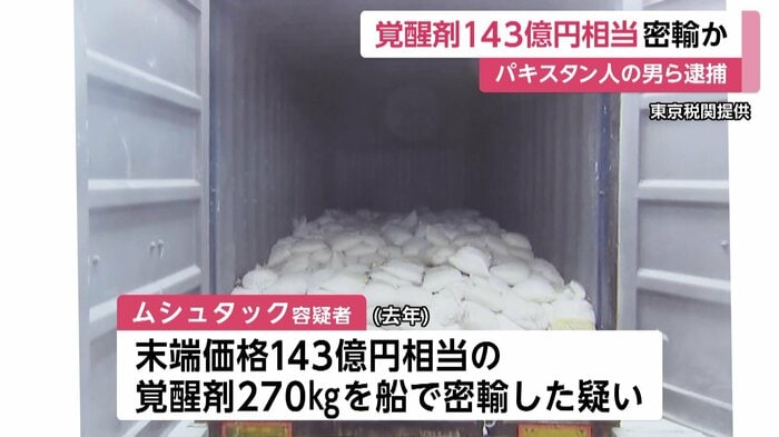 バットシャフカット・ムシュタック容疑者(53)は2025年、末端価格143億円相当の覚せい剤270キロを販売目的でコンテナに隠し船で密輸した疑いが持たれている。