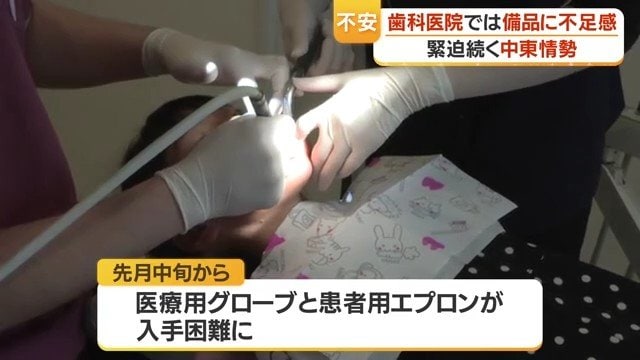 鹿児島県鹿屋市の四季デンタルクリニックでは、3月中旬から診療に欠かせない医療用グローブや患者用エプロンなど、石油由来の製品が入手困難な状態が続いている。石油由来のグローブだけでなく、ゴム製のグローブまで手に入りにくくなっているという。