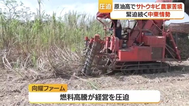 種子島でサトウキビの収穫が佳境を迎える中、鹿児島県中種子町の農業生産法人「向耀ファーム」でも燃料高騰が経営を直撃している。収穫作業に使うハーベスターは1日50〜70リットルの軽油を消費し、精脱作業の運搬車両にも軽油が必要だ。