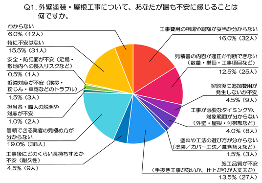 Q1.外壁塗装・屋根工事について、あなたが最も不安に感じることは何ですか。