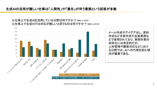 生成AIの活用が難しい仕事は「人間性」や「責任」が伴う業務という回答が多数