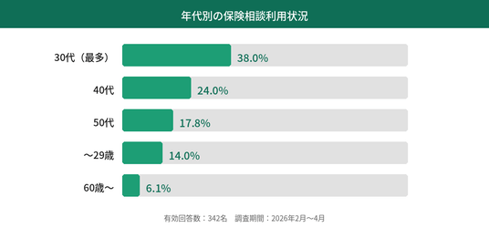 さらに30代以下も14.0%おり、社会人として初めて保険を真剣に考え始める層から、子育て・住宅購入などのライフイベントで見直しを迫られる層まで、幅広い年代が利用している実態が明らかになりました。