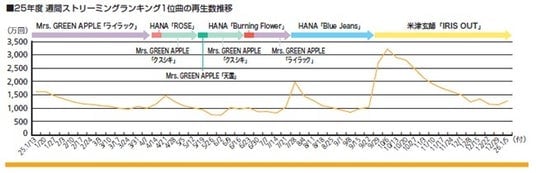 25年度 週間ストリーミングランキング1位曲の再生数推移