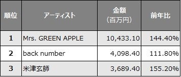 2. Mrs. GREEN APPLEはオリコン史上初のデジタル売上100億円超え