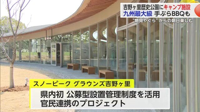 佐賀県内初の公募型設置管理制度を活用した官民連携のプロジェクトで、施設はキャンプ用品などを手掛けるアウトドアメーカーのスノーピークが運営する。
