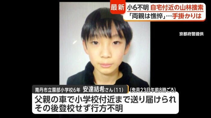 京都・南丹市の小学6年生、安達結希さんが行方不明になって半月が経過した7日。