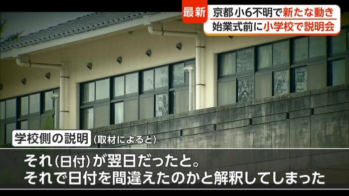 「無事に見つかってほしい」と多くの生徒や関係者が願う中で8日、始業式を迎える園部小学校。