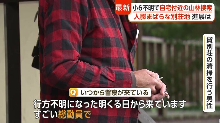 現場付近の貸別荘で清掃作業などを行うという住民は、「うちの防犯カメラを見せてくれとかね。(Q.いつから警察が来ている?)行方不明になった明くる日から来ています。すごい総動員で。(Q.規制線が張られる大規模な捜索は?)それはなかったです」と、以前もこの山林周辺に警察が来ていたと語る。