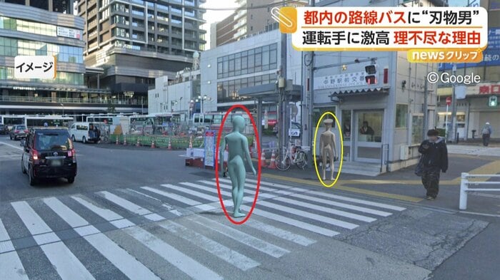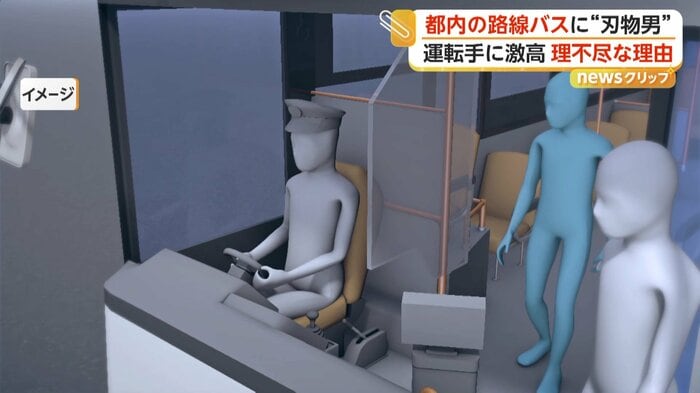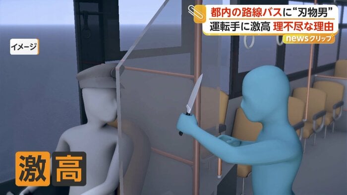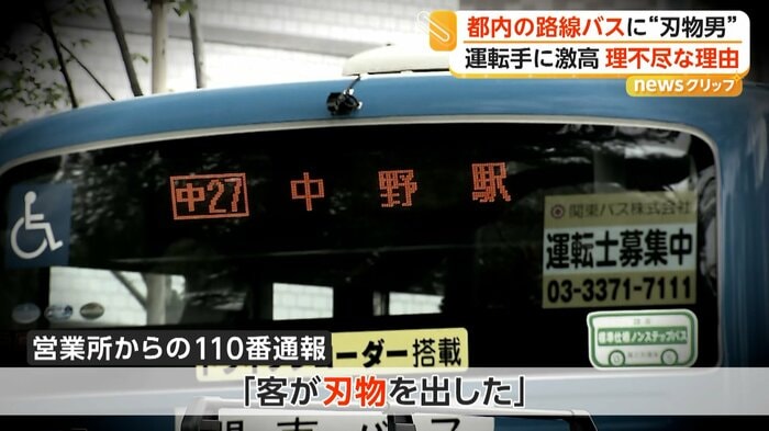 東京・中野区を走る路線バス車内で、「遅い!」などと激高した男が刃物で運転手横の防護板をたたく事件が起きた。運転手は終点・中野駅前の交番に駆け込み、後を追ってきた男がその場で現行犯逮捕された。