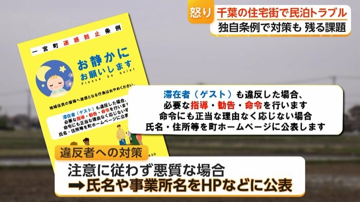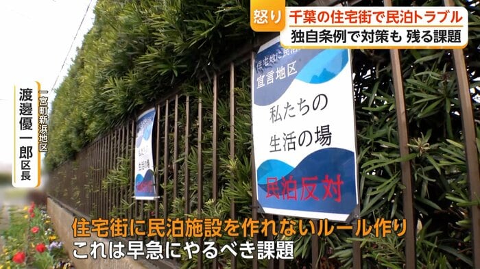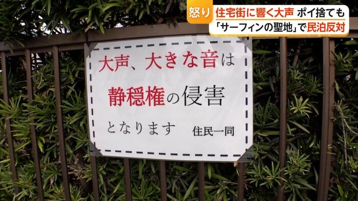 千葉・一宮町の住宅街で民泊・簡易宿所が6倍以上に急増し、深夜の騒音やごみの不法投棄などトラブルが相次いでいる。