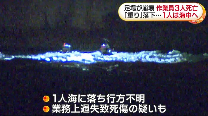 また、1人は海に落ちて行方がわかっておらず、8日朝から消防などが引き続き捜索にあたるとともに、警察は業務上過失致死傷の疑いも視野に調べる方針。