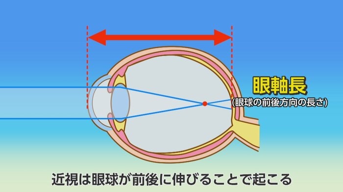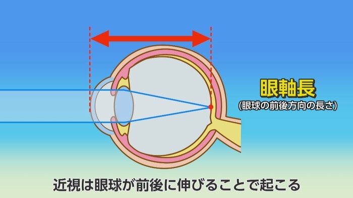 主な要因として挙げられるのが、スマートフォンやゲーム機の普及だ。近いところを長時間見続けることで、眼球の前後の長さ(眼軸長)が伸び、近視が進行するとされている。こうした生活環境の変化が、子どもたちの目に大きな負担をかけているのだ。