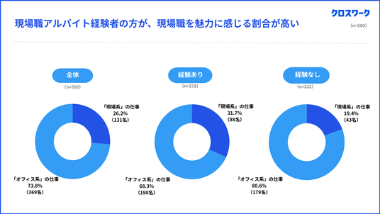 今回の調査対象者500名のうち、「現場系・ノンデスクワーク」アルバイトの経験者は 278名でした。