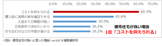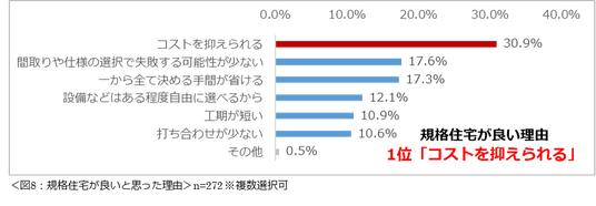 規格住宅、建売住宅、中古住宅を希望する理由1位はいずれも「コストを抑えられる」。