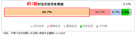 戸建て住宅を購入する際に希望する種類を尋ねたところ、「注文住宅を希望する」という人が最も多く66.7%という結果になりました。(図6)