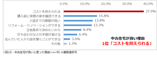 購入を希望する住宅の種類が「規格住宅」と回答した272名、「建売住宅」と回答した141名、「中古住宅」と回答した95名にそれぞれその理由を尋ねたところ、いずれも「コストを抑えられる」という回答が最多でした。(図8)(図9)(図10)