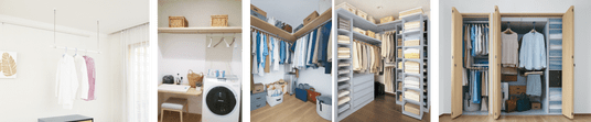ウォークインクローゼットは、天棚とハンガーパイプで構成したシンプルなタイプと、さらに収納棚と引き出しを充実させたタイプをご用意しております。人気のシステムクローゼットでは、奥行きを有効活用する「スライドハンガー」や、上下2段式で収納できる「ダブルハンガー」、「小物入れ」「衣装ケース」などが備わっており、ハンガーにたっぷり衣服をかけられるので、たたむ手間も少なく、衣替えの手間も軽減。廊下や洗面脱衣室に併設し、ご家族共用の収納として使用する方も多くいらっしゃいます。