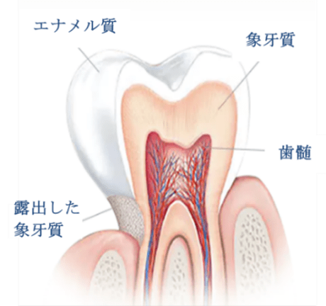 1.歯のエナメル質がすり減るなどの原因により象牙質が露出する