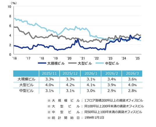 新築ビルではテナント誘致に時間を要する傾向にあり、フリーレント等のキャンペーンを実施するケースが増えている。