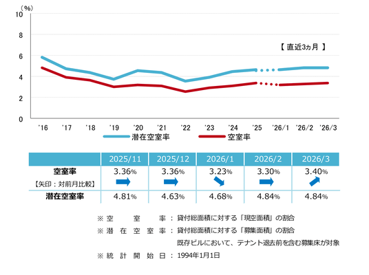 空室率 2ヵ月連続で小幅な上昇 「南口」は2016年4月以来の2%台