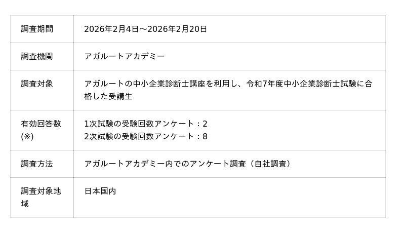 中小企業診断士試験に合格した人のアンケート調査概要