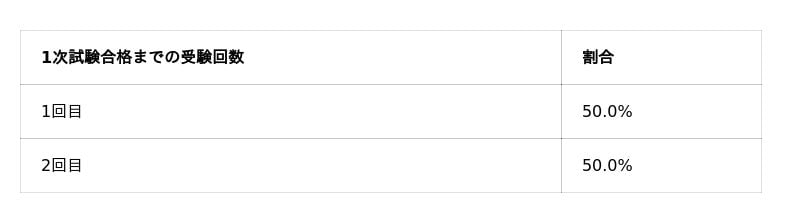 1回目の受験で合格したユーザーの割合は、1次試験50.0%・2次試験12.5%です。
