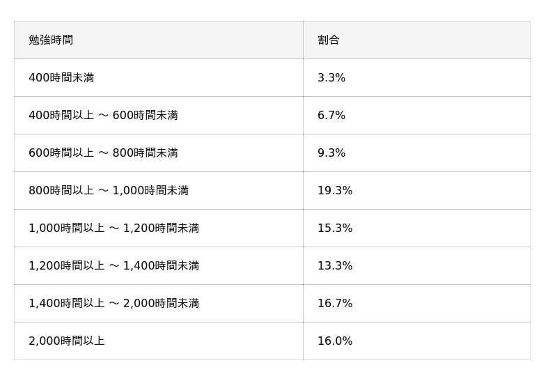 土地家屋調査士試験合格者の合計勉強時間