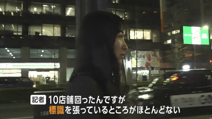 だが、記者が10店舗ほどまわっても、標識を張っているところがほとんどない。ネット上では分煙や全席喫煙可といった情報はあるが、標識は確認できない。