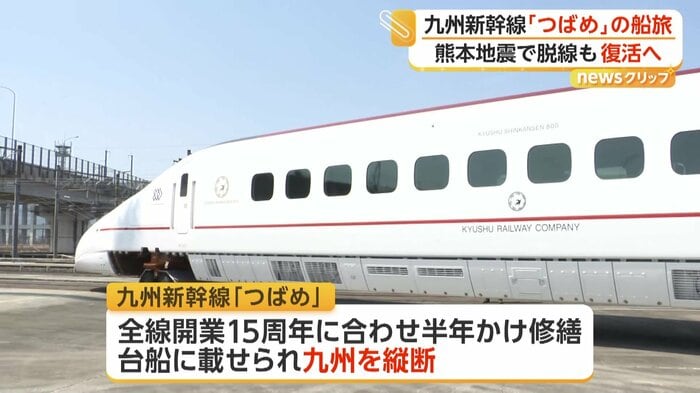 2016年の熊本地震で運行できなくなった新幹線「つばめ」が修繕され、九州を縦断する“感謝の船旅”を行った。10日からJR博多駅前のイベントで一般公開される。