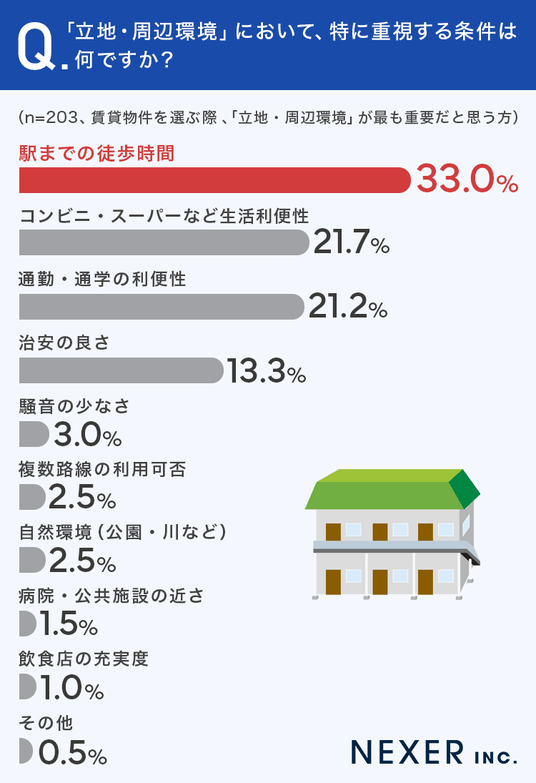株式会社NEXER・賃貸物件を探すときに最も重視する条件に関する調査