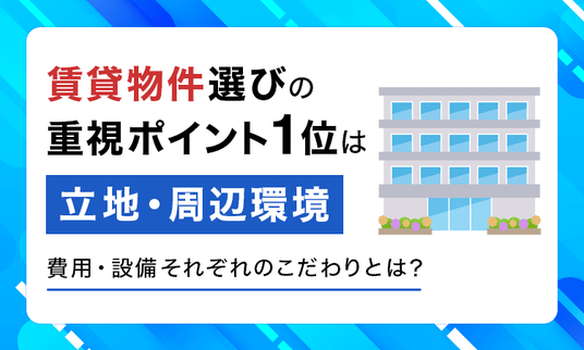新生活のスタートや転勤、家族構成の変化など、さまざまな理由で賃貸物件を探す機会は訪れます。家賃や立地、設備など気になるポイントはいくつもありますが「最も重視する条件」と聞かれたら、どれを選ぶでしょうか。