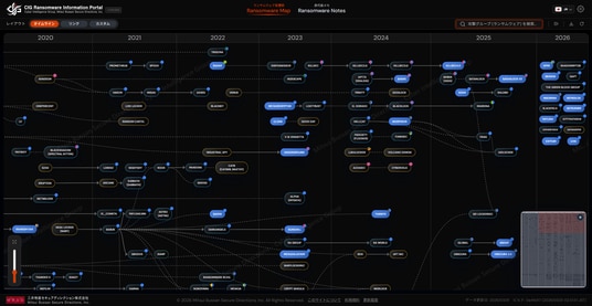近年、国内企業を標的としたランサムウェア攻撃は増加傾向が続いており、被害企業の事業継続に深刻な影響を及ぼしています。こうした脅威に対応するためには、ランサムウェアグループの動向や背後にあるつながりを正確に把握し、迅速かつ的確な対策を講じることが不可欠です。当社がこれまでPDF版として提供してきた「Ransomware Map」は、ランサムウェアグループ間の関係性や変遷を包括的に整理した資料として、国内外のセキュリティ専門家の皆様から高い評価をいただいてまいりました。