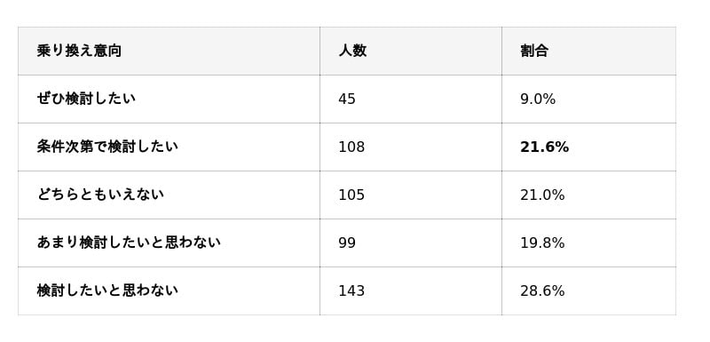 ・約半数が乗り換え未検討で、潜在需要は大きい