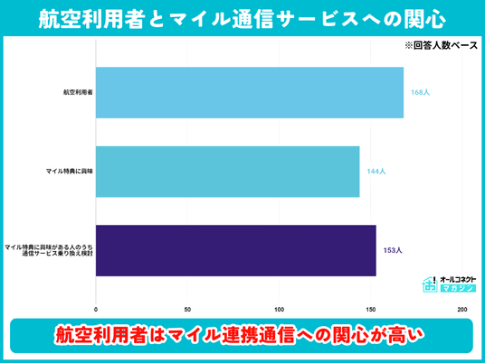 航空×通信で検証:航空利用者の約86%がマイル連携に興味