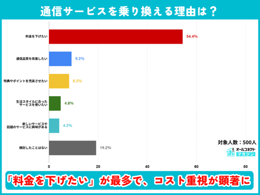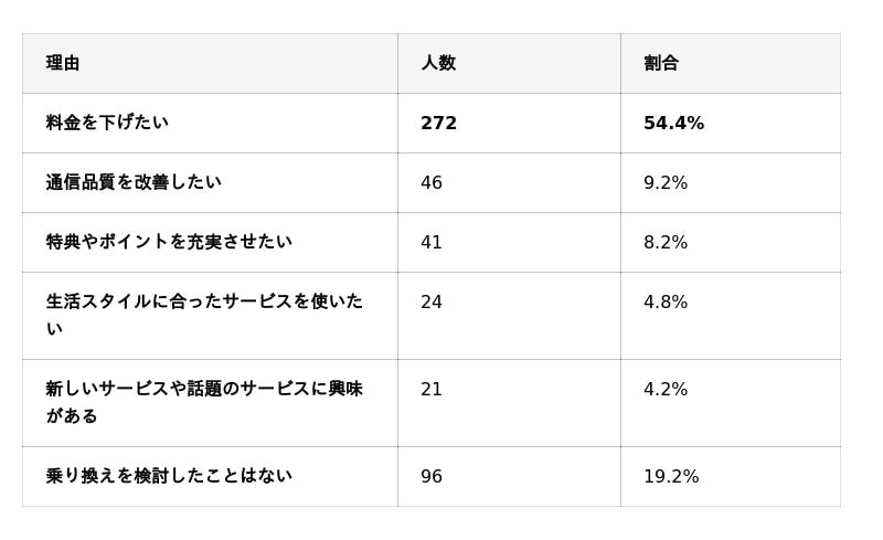 乗り換え検討は「料金」が圧倒的だが「特典充実」も13%