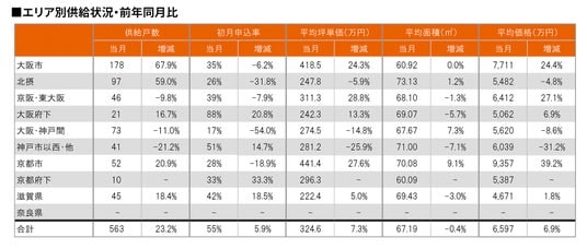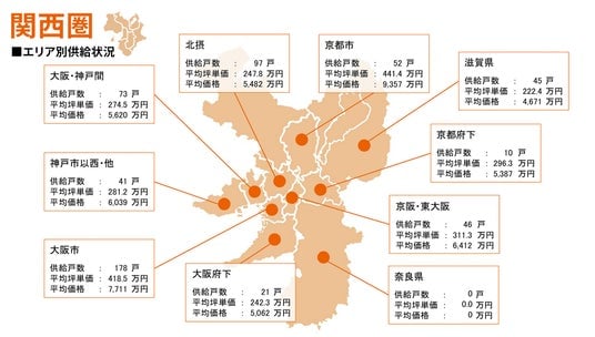 集計対象エリアは首都圏及び関西で、それぞれのエリア別相場情報、需給動向、着工件数等を集計しました。