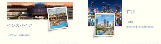 また、番組内で“パラダイス”として登場するインスパイア・エンターテインメント・リゾートの検索数も、前月比102%増となりました。作品内に登場する象徴的なスポットへの注目が、宿泊・滞在先の検討につながっていることがうかがえます。