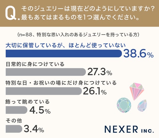 ■約38.6%が、思い入れのあるジュエリーを「大切に保管しているが、ほとんど使っていない」と回答