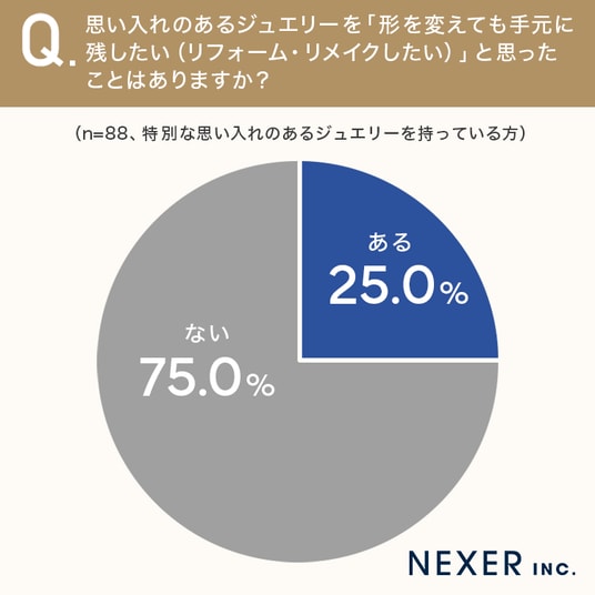 さらに、思い入れのあるジュエリーについて「形を変えても手元に残したい(リフォーム・リメイクしたい)」と思ったことがあるかを聞いてみました。