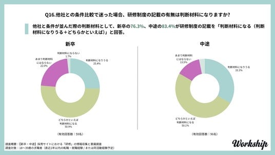 研修制度が他社と条件が並んだ際の「判断材料」に。新卒の76.3%、中途の83.4%が判断材料に活用