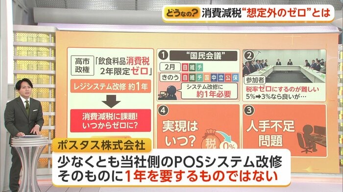 2月の衆院選で争点の一つにもなった「消費税の減税」。高市政権が目指す「飲食料品の消費税2年限定ゼロ」に必要なレジシステムの改修作業が、1年程度かかる見通しであることが分かった。課題が続出しているが、消費税はいつからゼロになるのか。
