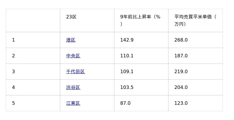 東京23区価格上昇率ランキング6位以降はすみかうるをご覧ください。