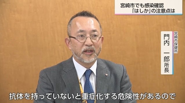 宮崎市保健所の門内一郎所長によると、はしかの感染力は新型コロナウイルスなどと比較して非常に強いという。